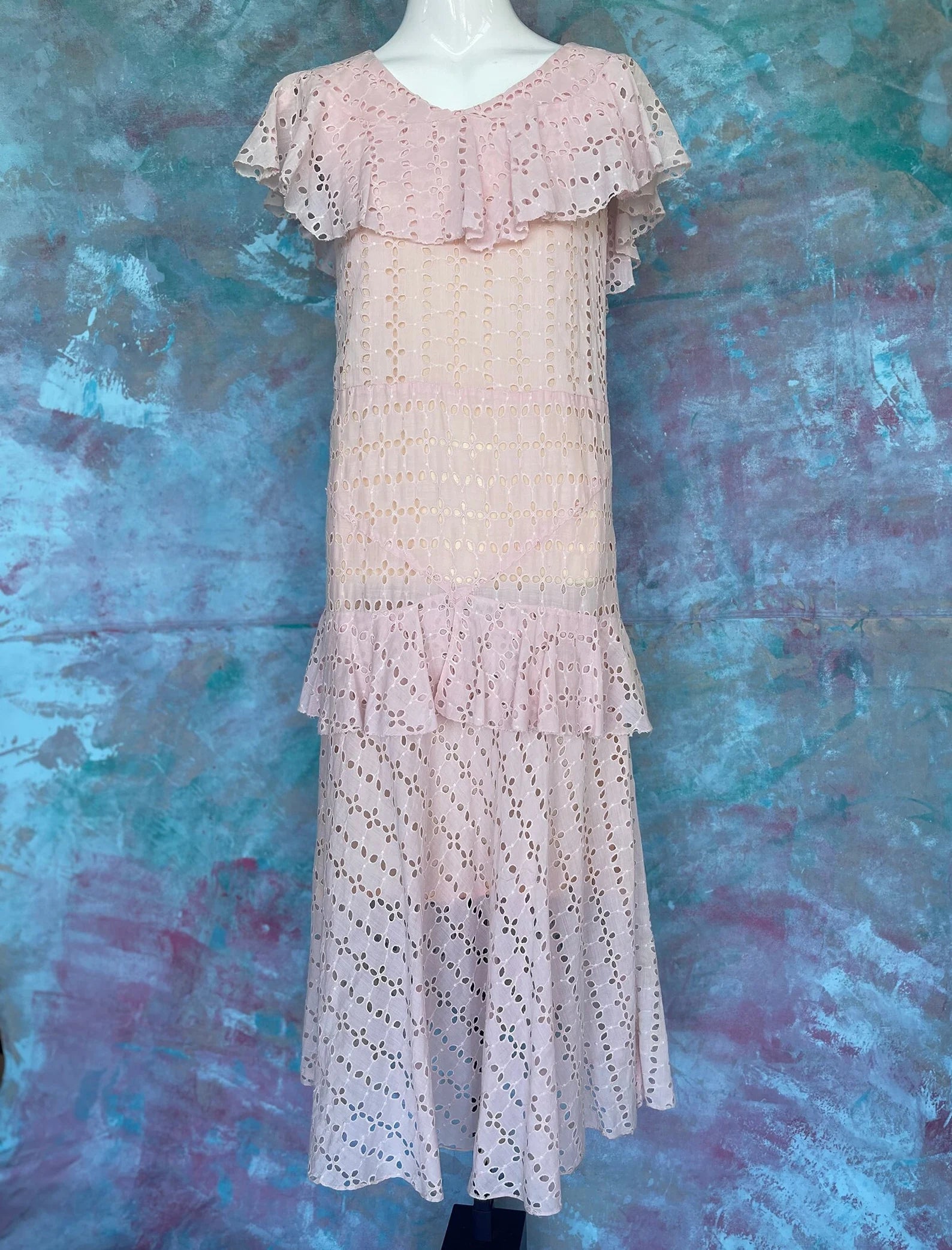 1930s Pink Eyelet Flapper Tea Dress