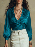 - Wrap shirt details: Adjustable tie closure at the waist for a customizable fit, softly draped front, and relaxed sleeves that add fluidity and feminine volume.