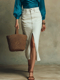 - Pencil skirt silhouette: High/comfortable waist with a slim, knee-to-midi length cut that creates a sleek, elongating line.