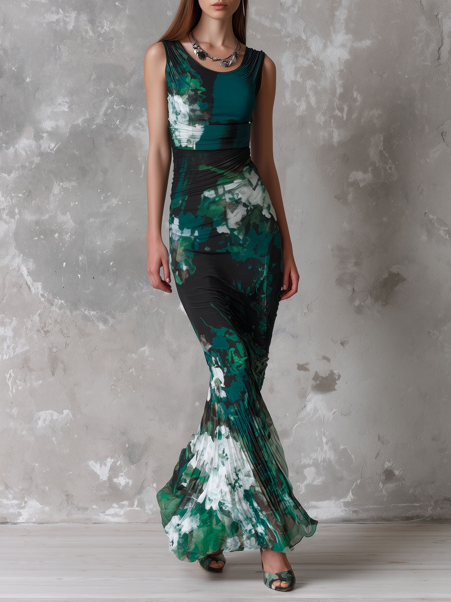 This Retro Elegant Emerald Bloom Sleeveless Pleated Maxi Dress is a versatile, statement-making piece that combines classic structure with romantic detail. Its rich color and pleated silhouette make it suitable for a wide range of occasions—dress it up for evening glamour or style it more casually for daytime charm. A wardrobe staple for anyone seeking timeless, feminine style.