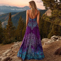 Viking Tree Of Life Gradient Purple Women's Spaghetti Straps V-neck Maxi Dress