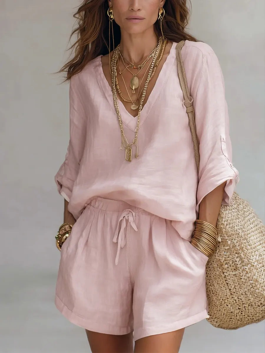Women's V-neck Shorts Simple Set